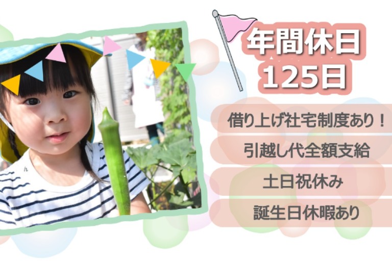 【保育士】◎正社員募集◎月給27万以上!年休125日/借り上げ社宅制度あり/残業月平均0~5時間で持ち帰り業務なし☆