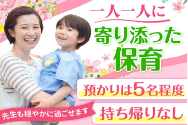 ⛅0~5歳・定員30名/事業所内保育所⛅ 現在のお預かりは5名程度で、一人ひとりと丁寧に向き合える環境です。 事業所内で働く方のお子様を、ゆったりとした雰囲気の中でお預かりします。 子どもたちが安心・安全に過ごせるように保育をお願いします。 一時利用として利用する子も多いので、不安を感じずに楽しく過ごせるように務めることも重要です。 ⏩季節の行事は子どもに合わせて毎年の行事内容を検討しており、準備は職員全員で対応するので負担ありません ⏩少人数の利用なので、一人一人と深く丁寧に関わりたい方や、時間に追われずに子どもに合わせてゆったりと保育をしたい方に向いている環境です [業務変更の可能性] なし [雇用期間の定め] なし [就業場所の変更の可能性] なし |