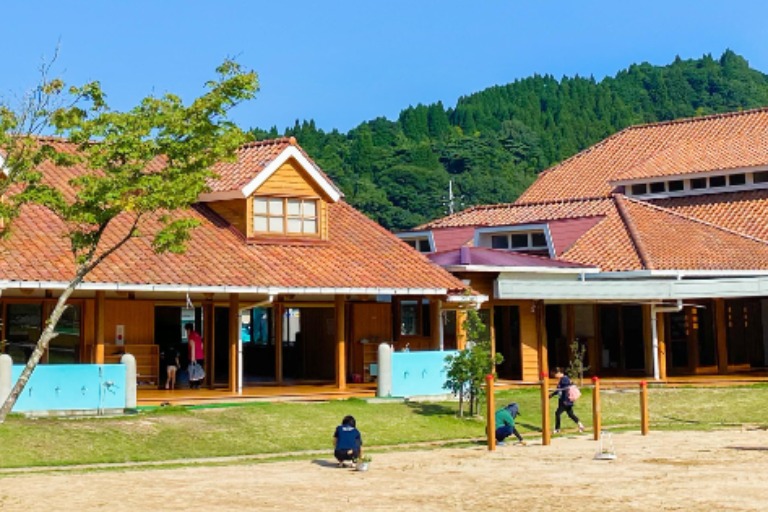 自然の中にある木造の園舎でこどもたちと