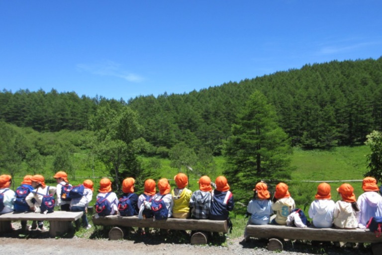 子どもたちの”やりたい!””やってみたい!”の気持ちを大切に、自然を軸に毎年テーマをもってあそびこんでいます。5才児クラスは毎年7月に長野県に一泊保育に行き、大自然にどっぷり浸って2日間を過ごします。よろず保育園で子どもたちと一緒に自然に触れながら、たくさんの発見をしてあそんでみませんか?