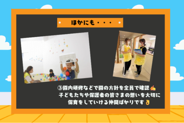 #園内研修などで園の方針を全員で確認。