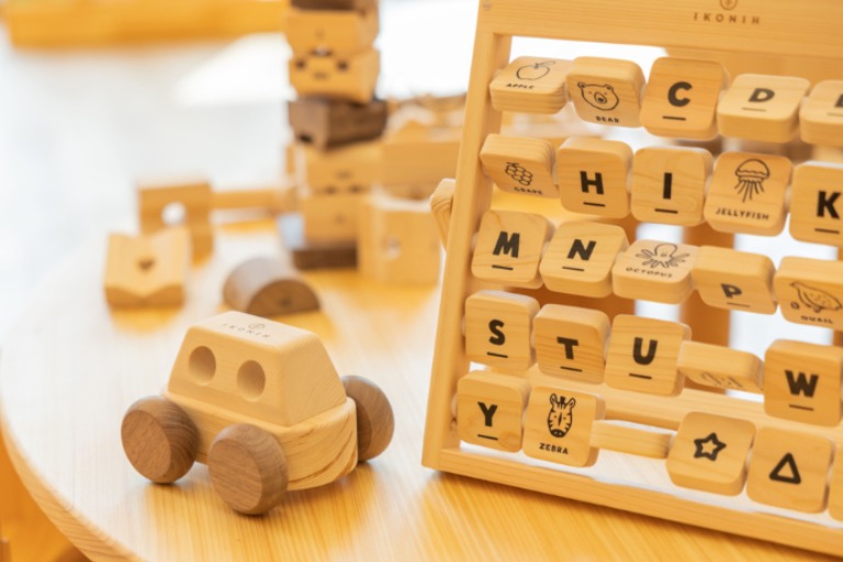 木のおもちゃを多く取り揃え、キャラクター・機械音がする玩具は使用していません