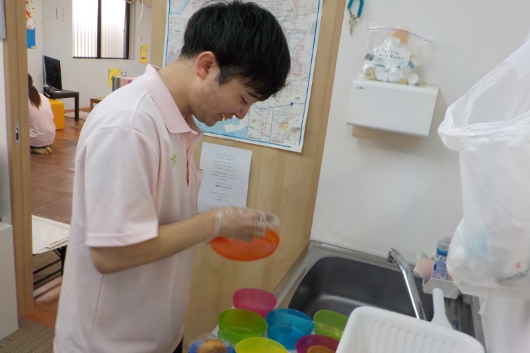 手洗い、うがい、トイレ等の生活動作、お出かけや調理レク、昼食やおやつを食べたり、療育プログラムの実施。