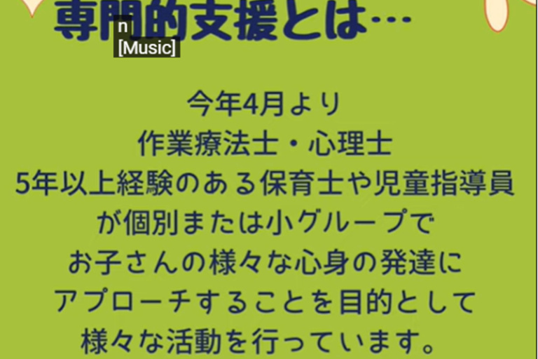 | 資格 | 保育士 幼稚園教諭第一種 幼稚園教諭第二種 放課後児童支援員・指導員 児童発達支援管理責任者 サービス管理責任者 高等学校教諭普通免許 中学校教諭普通免許 小学校教諭普通免許 社会福祉士 衛生管理者 言語聴覚士 作業療法士 理学療法士 精神保健福祉士 普通自動車運転免許 |