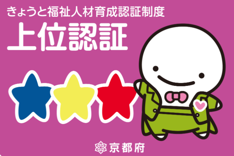 これらの取組が認められ、京都府知事から、「きょうと福祉人材育成認証制度」に基づく「上位認証★★★」を取得しました。