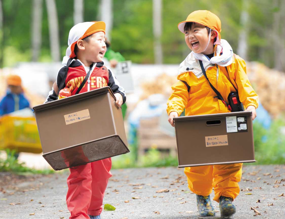保育は環境を通した遊び中心となっています。また、園生活の中では自分で考え、決定する機会を大切にし、子どもが指示を待つのではなく、自ら考え、決定し、動く行動力が育つことを大切にしています。先生も同様に一人一人の想い、発信を大切にし、先生の個性やコミュニケーションも子どもにとって良い影響が期待できると考えています。1人の先生のアイデアを同僚の先生たちが一緒に検討し、質を高めて、子どもに提供できる環境となっています。こんな保育をしてみたい、もっと勉強してみたい、そんな思いを形にしようとする先生たちの「気持ち」を大切にしています。