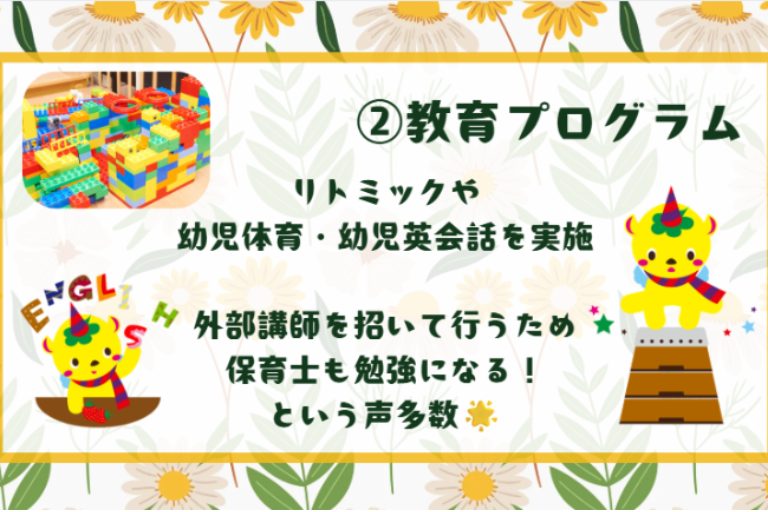 保育士として、日々の保育・保護者対応などをお任せします。