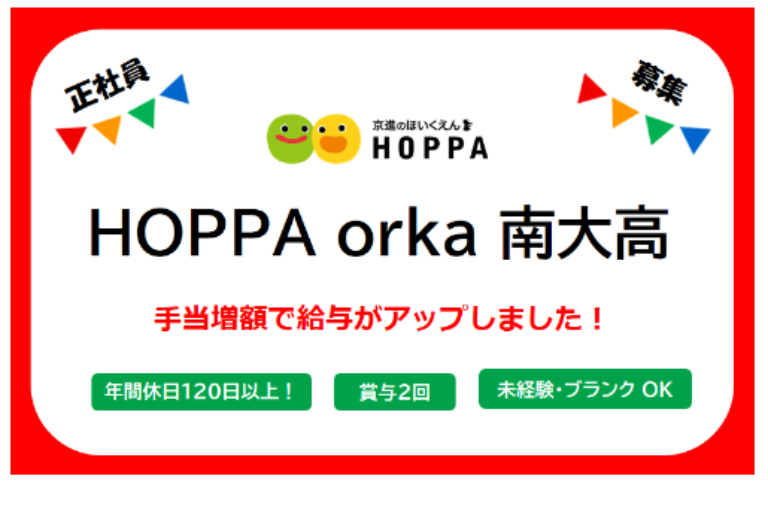 ・ 保育業務、並びに保育に関わる一般業務 ・ 子どもの受入年齢:0歳児(6ヶ月)~2歳児 ・ 園児定員:合計12人 ■ 2023年9月1日の在園児数 0歳児=0人 1歳児=8人 2歳児=4人 ■ 乳幼児への養護と保育に係るお仕事全般を中心にお願いします。 ■ 「保育に関わる一般業務」には、「連絡帳の記述」「園児の水分補給用のお茶づくり」「給食の後片付け」「おやつの配膳準備」「保育室の掃除」などを含みます。 ■ 「季節イベント」や「制作物」の準備にも関わって頂くこともありますが、ご自宅へ持ち帰っての作業をお願いすることはありません。 |