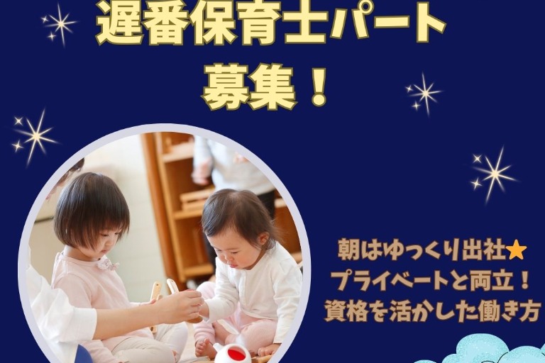・開園準備/園児の迎え入れ ・自由遊び/散歩/専門プログラム ・昼食/歯磨き/排せつ補助 ・お昼寝準備 ・書類作成 ・園児のお見送り など ★お昼休憩はしっかり確保! ★書類の簡素化&ICT化で負担なく勤務♪ ★家庭的な雰囲気の園で、子どもたちが安心や 信頼感を持てるような保育の実践をお願いします! |