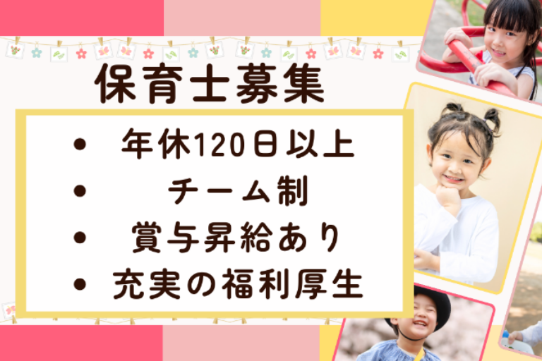 ☆居心地No.1☆4月Newオープン!保育士/給与21万~35万/賞与年2回/嬉しいボーナスあり