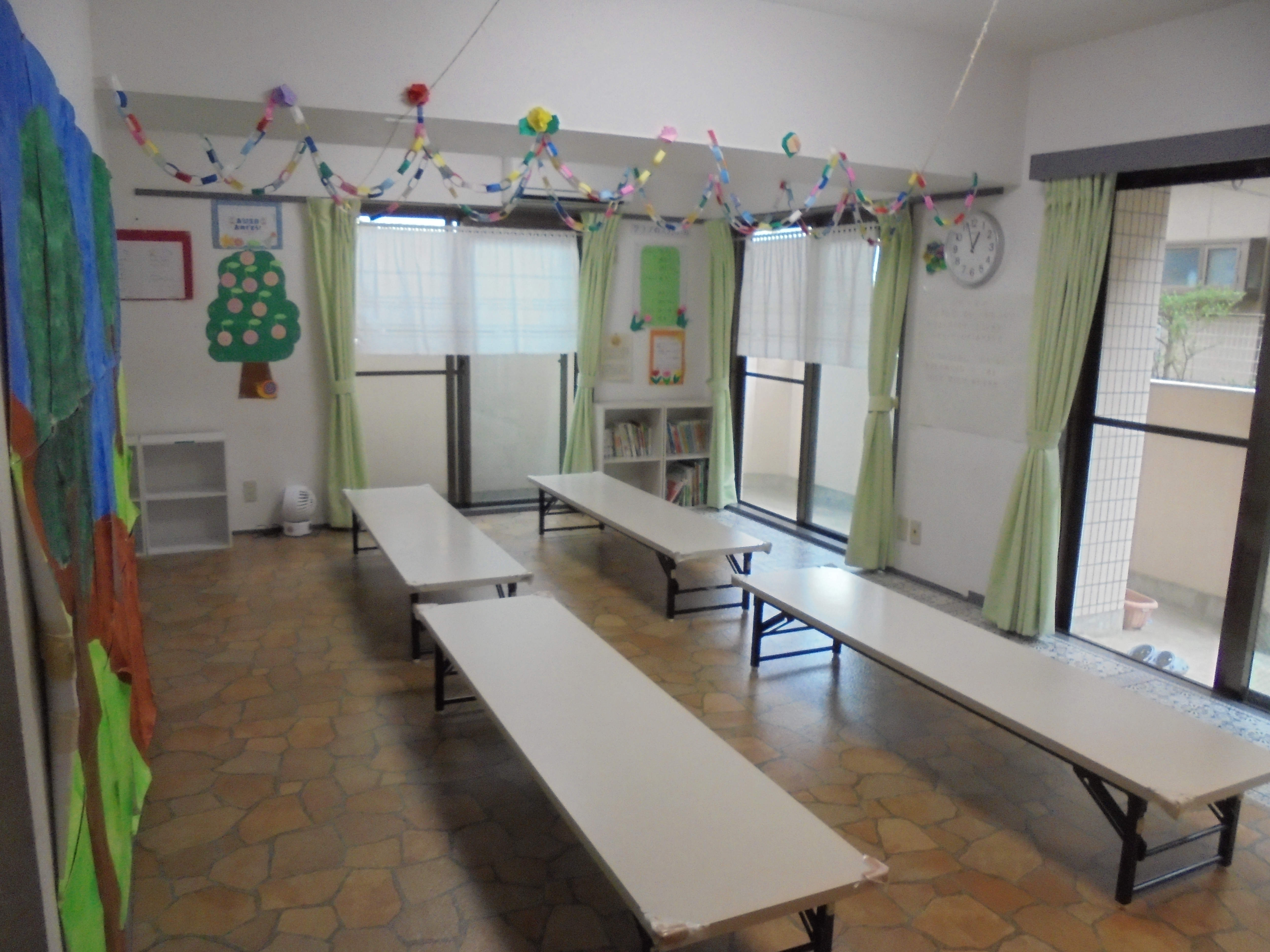 1日の流れ(例)平日の場合 ============= <午前> 10:00~ 支援の方法や送迎などの 連絡事項伝達、事務処理など <午後> 12:00~ 休憩、送迎の準備 14:00〜 送迎開始 15:00~ 生活カリキュラム 手洗い、うがい、おやつ、始まりの会 15:30~ 学習カリキュラム (宿題、創作) 16:30〜 運動カリキュラム (身体活動) 17:15〜 生活カリキュラム (帰り支度、帰りの会) 17:30〜 帰りの送迎 19:00 退社 |